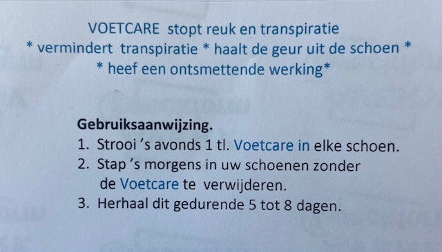 Eén theelepel Voetcare kristallen in elke schoen gedurende vijf tot acht dagen en u bent gegarandeerd vrij van zweetvoeten en geurtjes.